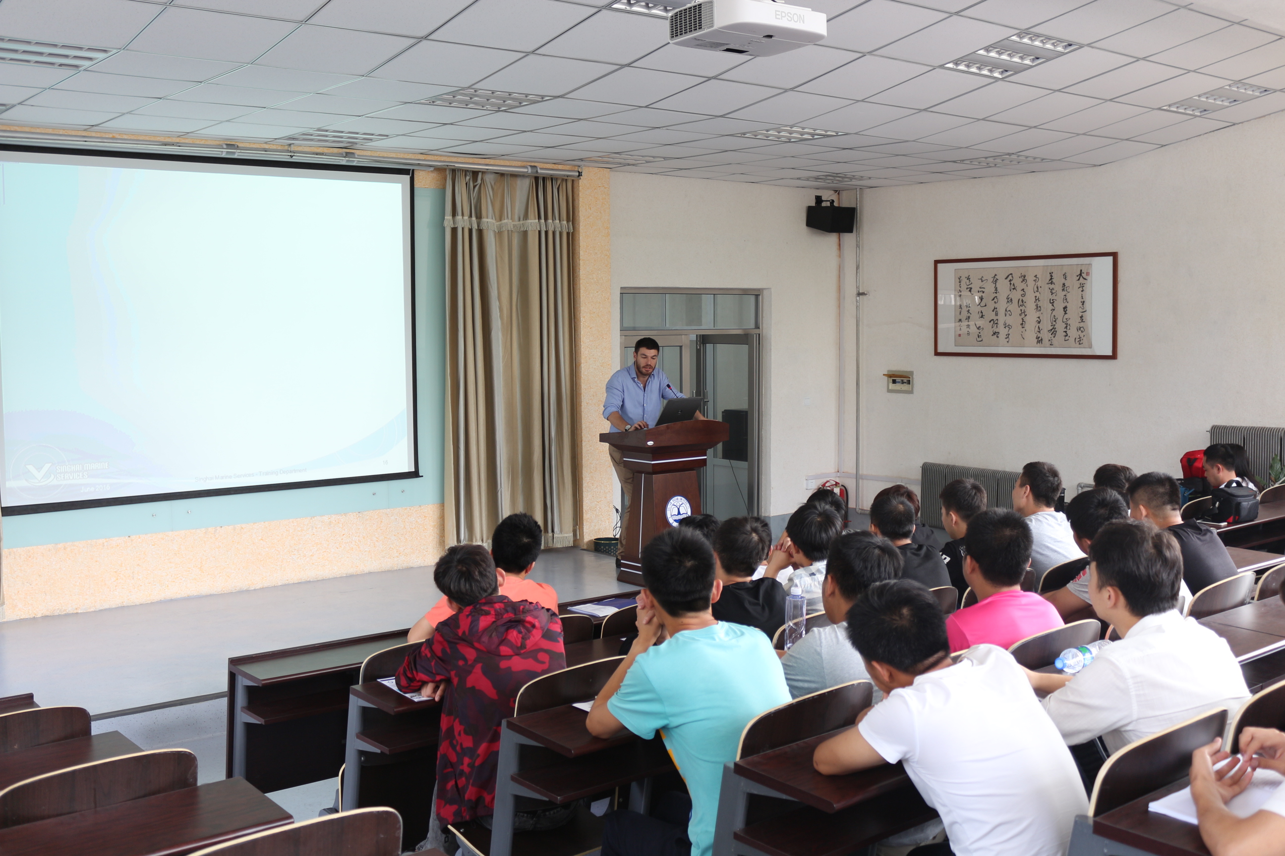 土耳其船长从航海工作范围、航海路线以及海员在海上日常生活三个方面入手,以图文结合的讲解形式向我院学子们生动讲述了海员的工作,还强调了船上安全以及英语的重要性。最后通过结合自身的例子,向同学们讲述了从一名新海员成长为一名高级船员所必须经历阶段,勉励同学们做好职业生涯规划,努力塑造自身的能力,不断奋进。并向同学们介绍了上海森海海事服务有限公司以及来我校招聘的硬件要求,鼓励学生树立远大的目标,坚定专业学习信心,早日考取大证。