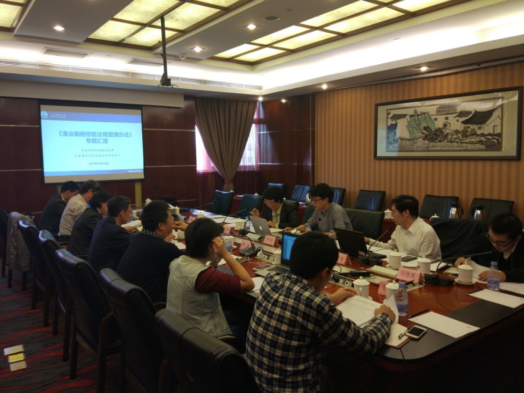 10月14日,受农业部渔业船舶检验局委托,“渔船检验法规管理办法”项目组在北京组织召开研讨会。农业部渔业船舶检验局郑松传处长、郭音调研员,辽宁渔业船舶检验局汪滔副局长,以及山东渔业船舶检验局、浙江渔业船舶检验局、水科院渔业机械研究所、武汉船舶设计研究所等专家应邀参加会议。会议由隋江华副院长主持。