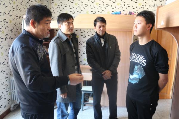 11月16日,麻豆传媒 党总支书记李俊柱、副书记王海鹏以及辅导员张云鹏走访了学院优秀党员寝室和航海文化节获奖寝室。