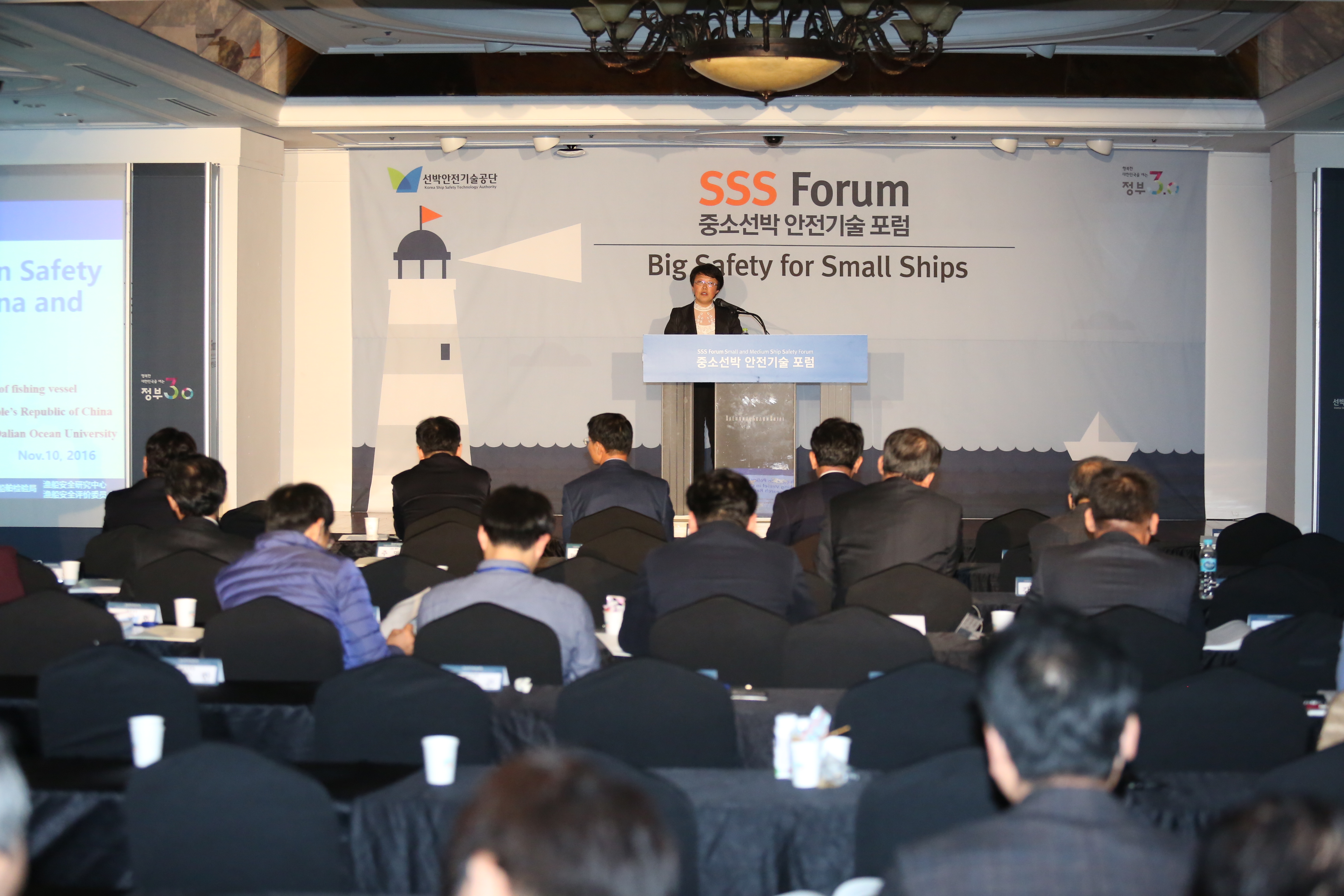 本次论坛的主题是“小船舶,大安全”,各国代表针对船舶安全这一永恒话题展开讨论,来自韩国海洋与渔业部海事安全政策规划部门的Chunsong Ko先生、海洋与渔业部副主任SMART航海项目经理Sunbae Hong先生、日本小型船舶检查机构业务部科长Seiji Saeki先生、挪威海事局的部门主管Sonja E. Hillersoy、高级验船师Jan Reinert Vestvik、印度尼西亚交通部副主任助理Agustinus Maun加拿大纽芬兰岛渔业海事研究大学Roger Bath、Chanwoo Bae两位船员培训教员、日本基础设施、交通和旅游部船舶安全标准办公室主任Akira ISHIHARA、中华人民共和国渔业船舶检验局渔业船舶安全研究中心隋江华副主任等代表多个国家围绕“中小型渔船政策”“中小型客货船安全管理”以及 “捕捞渔船和休闲渔船的安全管理”三方面议题做主题报告。来自韩国的相关专家、学者300余人参加会议并与各国代表进行现场互动交流。