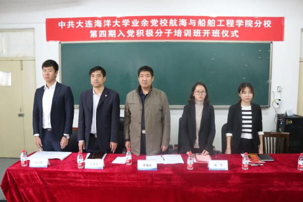 船舶工程学院第四期积极分子培训班开班仪式于11月18日星期五在实验楼219教室举行。出席本次开班仪式的有学院党总支书记李俊柱,大连市委党校科社教研部副教授韩占元、学院党总支副书记王海鹏、团委辅导员老师张云鹏、相雯、李明月以及第四期入党积极分子。此次仪式由张云鹏主持。