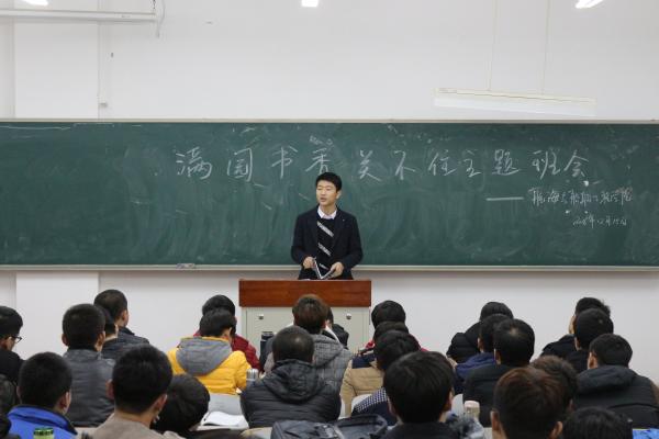 12月15日,在獐子岛教学楼211教室,麻豆传媒 辅导员赵小龙老师为2015级航海技术专业召开主题为“满园书香关不住”的主题班会。