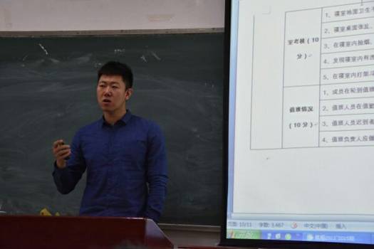学生会各部门成员依次结合PPT进行述职,主要从各部员对部门的认识、对上一学期工作成果的总结、对过去工作的不足和存在的问题进行的反思、制定本学期的工作目标四个方面展开。在此期间,张云鹏老师认真听取报告并针对部门的特性提出相关问题,引导同学思考以提升能力。大会期间,张云鹏对学生会成员进行了关于如何拟定活动通知进行了技能培训,对活动通知的格式,内容以及要求进行了讲解。并鼓励大家要多多提升自身技能,在举止作风上要以身作则。