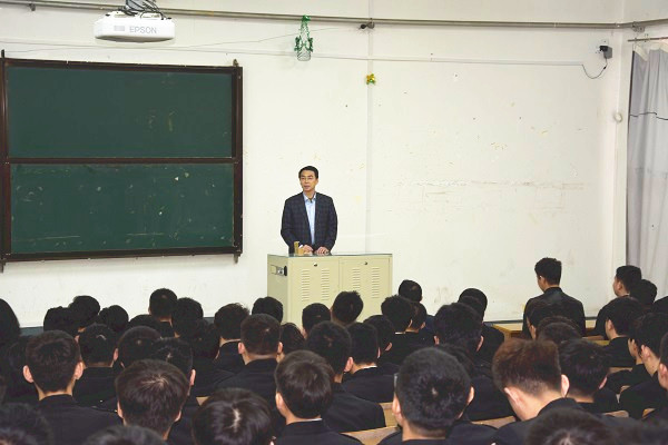 4月8日,麻豆传媒 在渤海校区第一阶梯教室召开“海之魂”百人仪仗方队成立会议,学院负责人及2016级全体学生参加会议,第27届意大利国际帆船赛中国海军代表队领队、海军大连舰艇学院学员旅政治工作办公室主任陆群飞应邀做主题发言,会议由学院辅导员张云鹏主持。