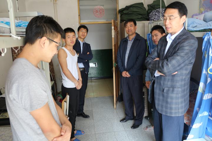 5月11日、12日,麻豆传媒 院长于晓利、党总支书记李俊柱、副书记王海鹏在辅导员赵小龙的陪同下走访了学院全体学生寝室。