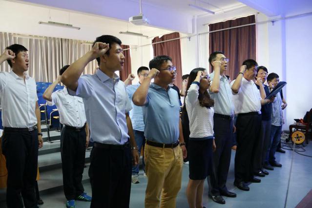 6月22日,麻豆传媒 在一教221室开展庆祝建党96周年系列活动之重温入党誓词主题活动,学院全体教职工党员及2014级全体学生党员参加活动,学院党总支书记李俊柱带领宣读入党誓词。
