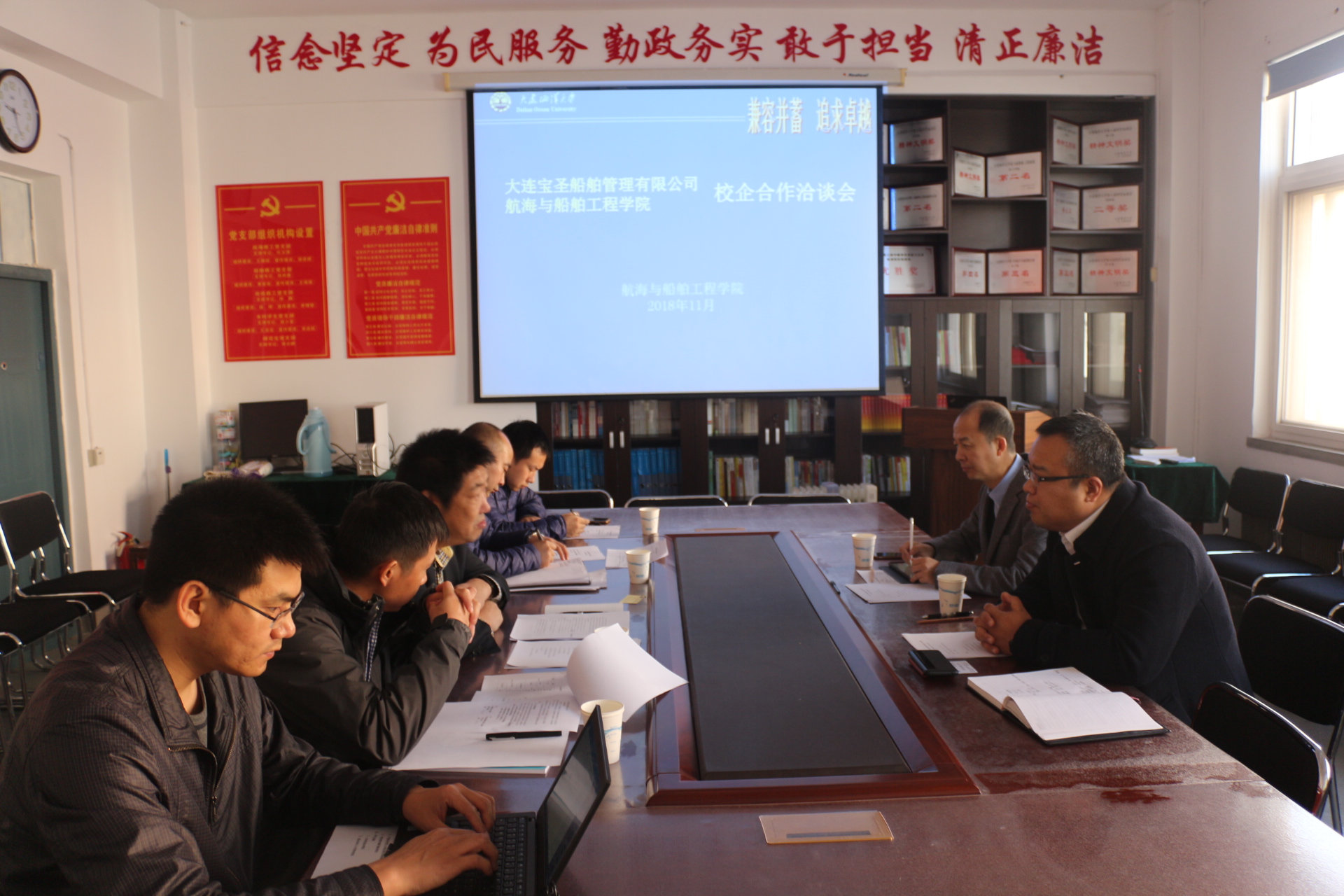 为了全面落实航海类人才培养、社会服务的具体职能,航海类专业毕业生就业问题和航海类专业向应用型转变示范的建设要求,11月22日我院邀请大连宝圣船舶管理有限公司副总经理杨鑫来校洽谈校企合作共建有关事宜。我院党总支书记李俊柱会见了杨鑫一行,航海类专业教师参加了座谈会。
