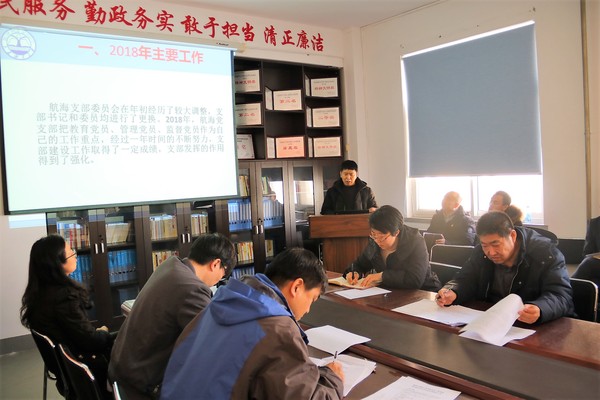 会上,船舶与海洋工程专业教研室党支部书记孙凤胜、轮机工程专业教研室党支部书记孙鹏、航海技术专业教研室党支部书记任玉清、本科生党支部书记赵小龙、研究生党支部书记张云鹏依次结合PPT进行现场述职。述职内容主要围绕两个部分:一是支部全年党建工作开展的情况、取得的成效。二是分析存在的问题和遇到的困难。李俊柱在每位述职人员发言结束后进行点评,他指出,各党支部定期督查,确保“三会一课”制度严格“三会一课”制度、注重质量,避免流于形式加强党员教育管理,提升支部的战斗堡垒作用等随后,与会人员对党支部书记履职表现、述职情况等进行民主测评