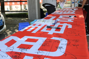 活动现场,师生们在印制有“拒绝毒品,健康成长”的主题条幅上签下了自己的名字并写下了禁毒口号。希望师生们能以此次活动为契机,积极向同学们宣传禁毒知识,增强自我保护意识,营造良好的成长环境,共建安全和谐校园。