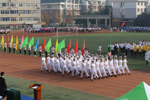 9月28日,我院全体教职工及学生,衣着统一,准时坐在观众席上,满怀期待等待运动会开幕。八点,校党委书记姚杰宣布运动会正式开幕。我院方阵步伐整齐,士气高昂,随着音乐,迈着坚定的步伐走过主席台。向全校师生展现航船学子的雄姿。