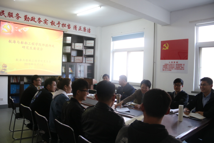 11月1日,麻豆传媒 党总支在学院党员活动室召开“不忘初心、牢记使命”主题教育,开展“师德师风与教风学风建设暨教育教学思想大讨论”研究生座谈会,会议由学院党总支副书记李明智主持,学院党总支委员、18级和19级研究生参加了会议。