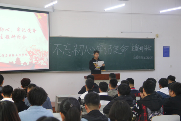 10月31日,麻豆传媒 团委学生会于獐子岛103教室深入开展“不忘初心、牢记使命” 主题研讨会,学生会全体干事参加了此次会议。会议由团委副书记叶军旗主持。