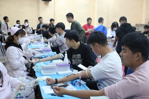 活动伊始,同学们便踊跃的加入到献血的队伍中,在采血车前排起了长龙。同学们从报名、填写献血表格、身份验证、体检、献血,到领取献血证、整个过程井然有序。学院志愿者们积极参与,协助血站工作人员顺利完成各项工作,使献血过程更加简洁迅速。