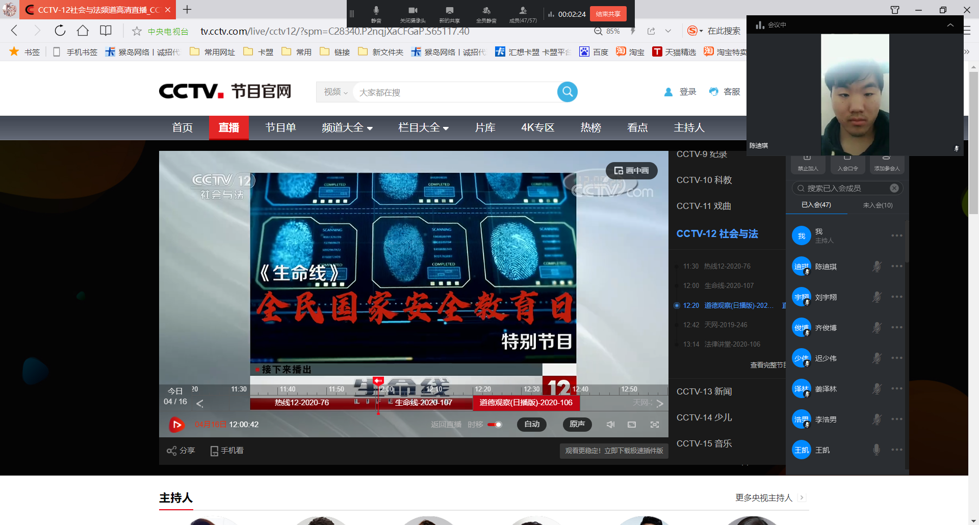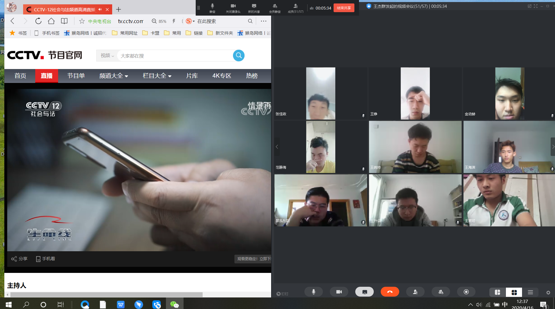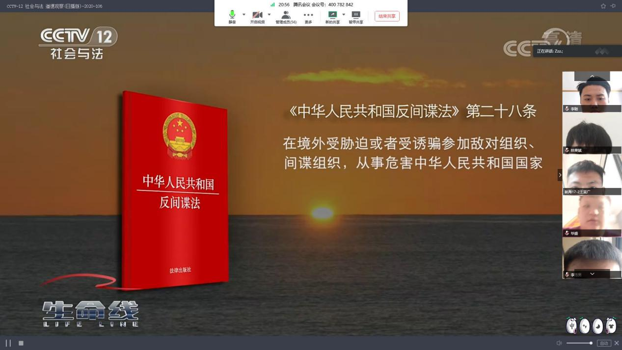 2020年4月16日,学院全年级34个班级,在带班辅导员组织下集体通过腾讯会议、钉钉视频会议观看了由央视“社会与法”频道(CCTV12)《生命线》栏目播出的专题节目《汇聚人民力量 维护国家安全》的首播与重播。
