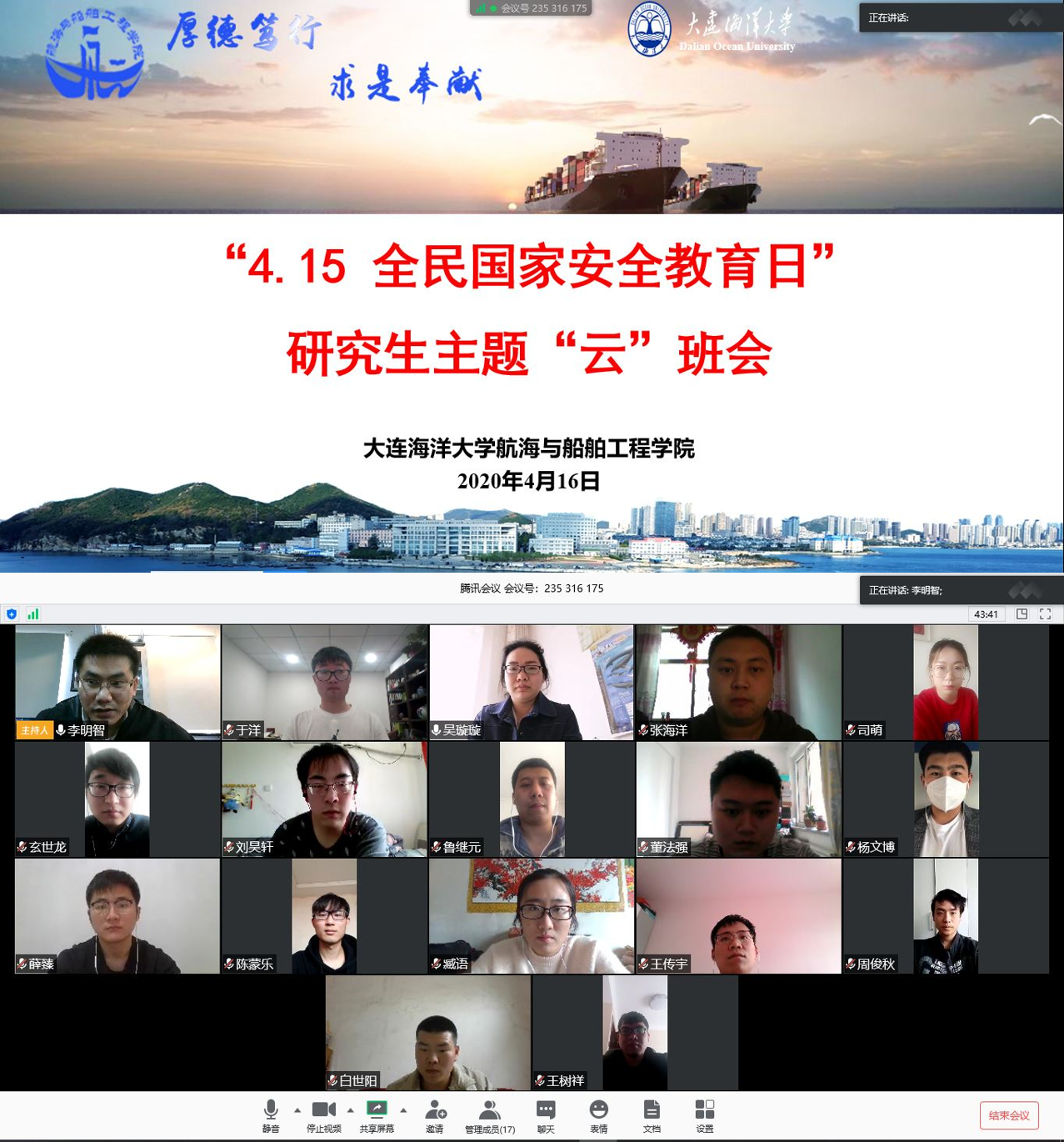在第五个“全民国家安全教育日”来临之际,学院组织研究生开展了“全民国家安全教育日”主题“云”班会活动。