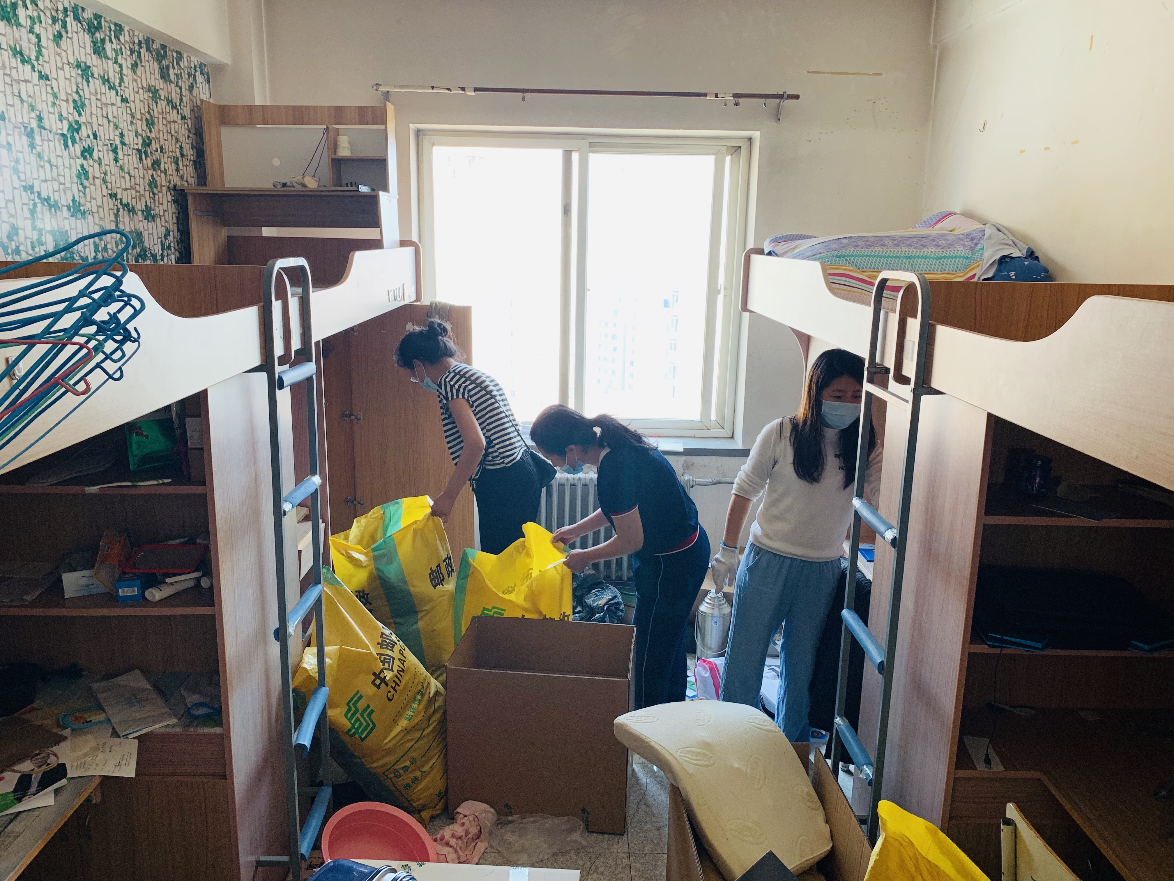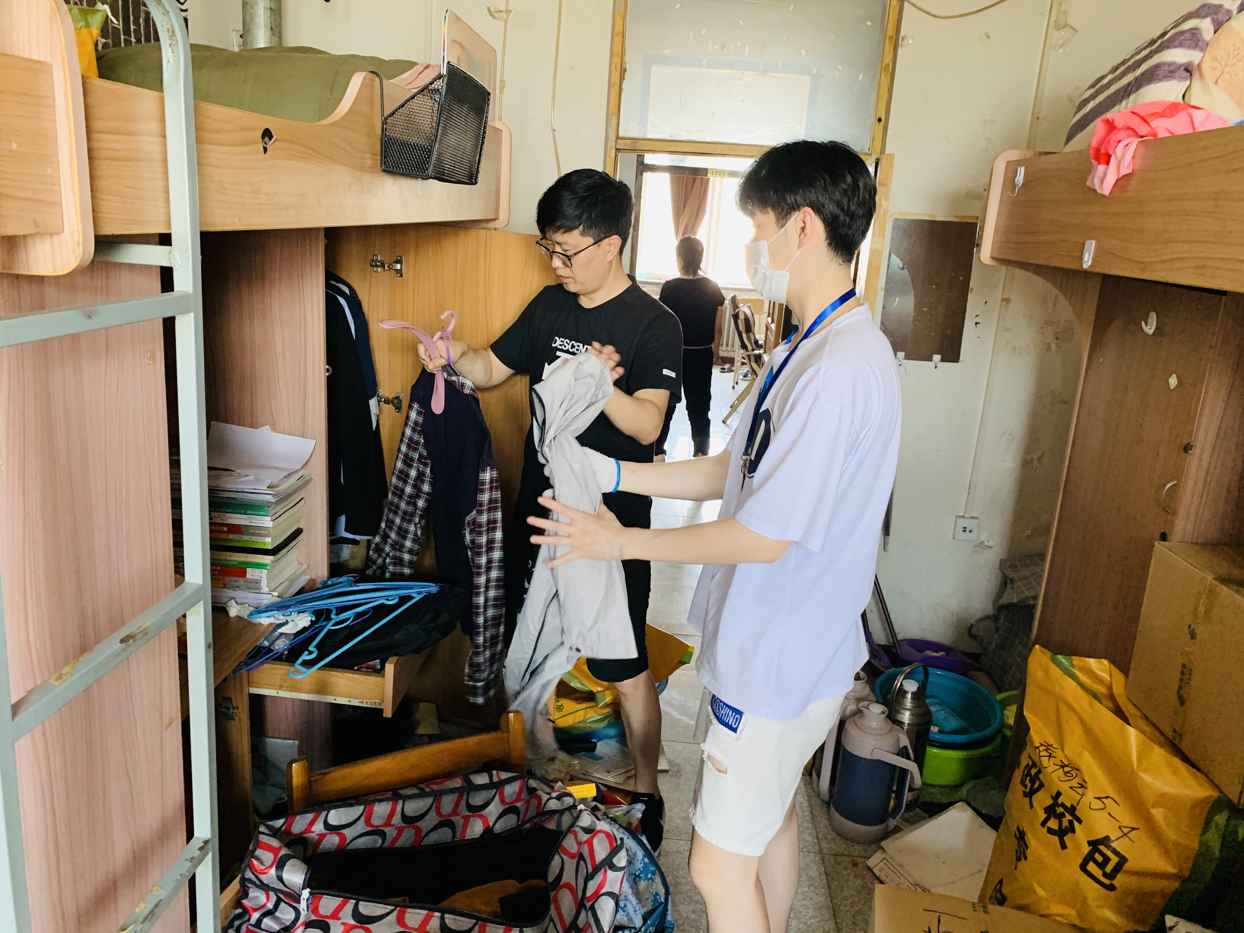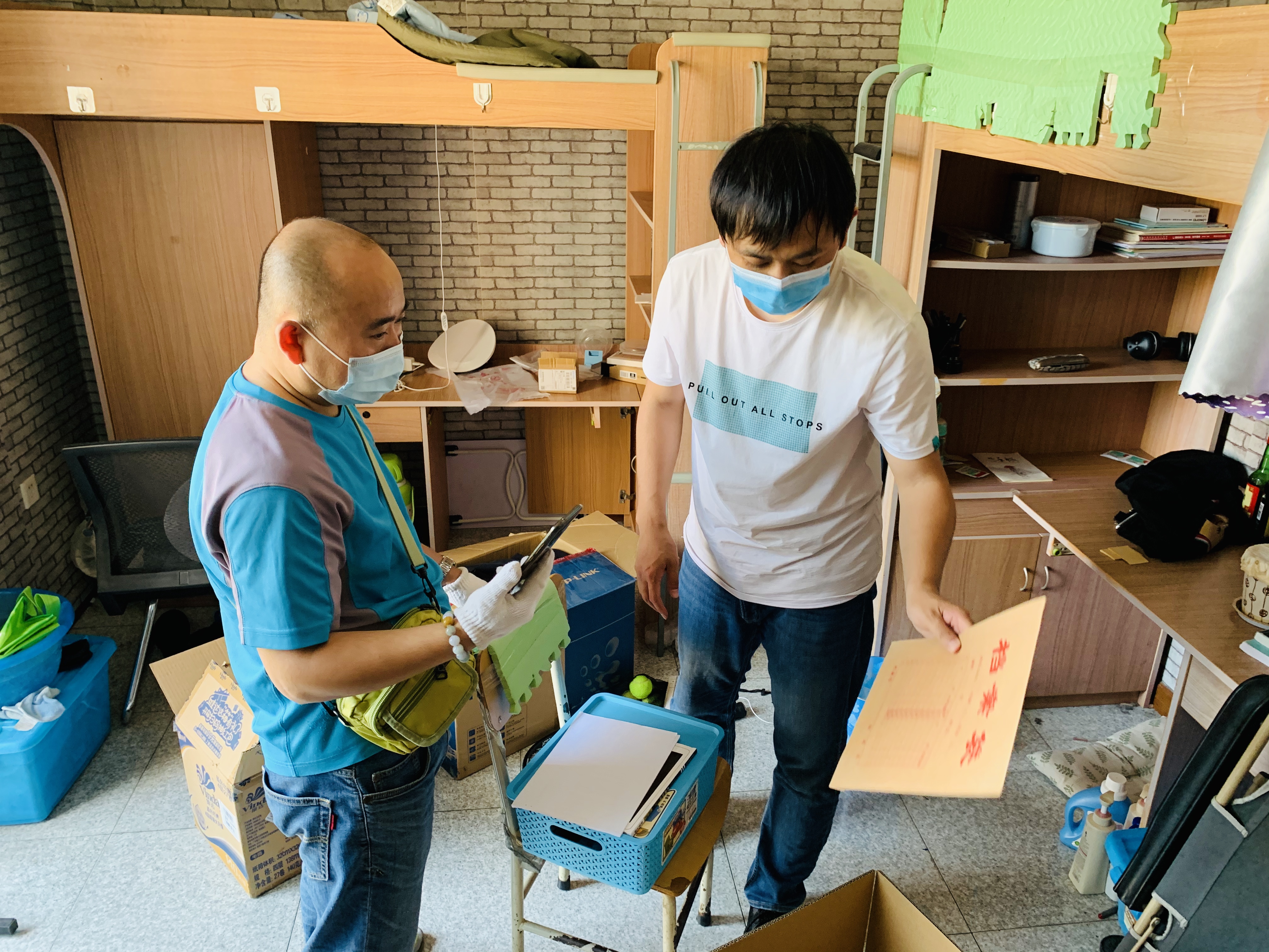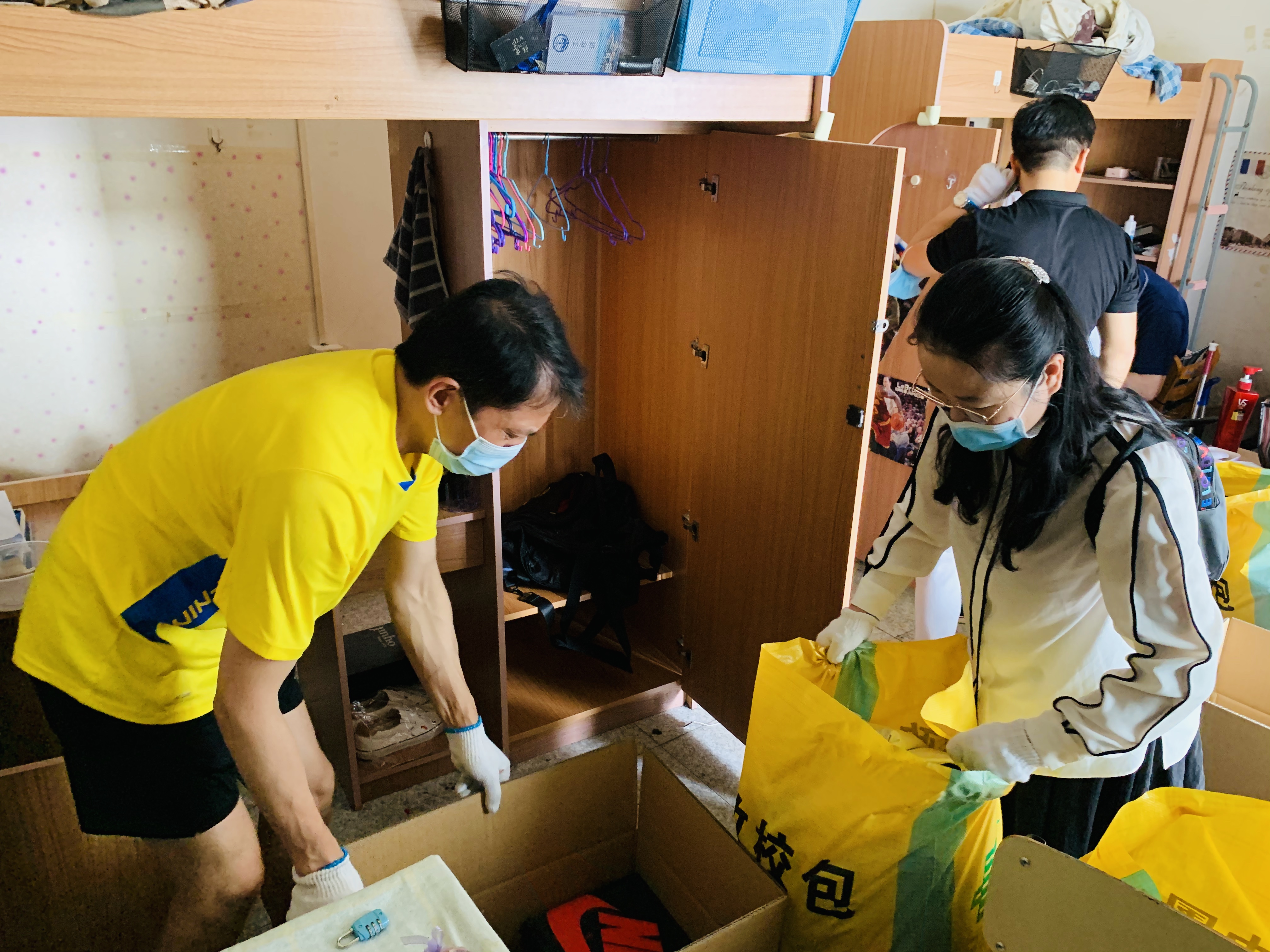 学院领导班子带头,各教研室具体分工,带领各位老师们采用直播打包、多对一服务的形式,积极和学生沟通,亲自动手为学生打包、寄送行李。