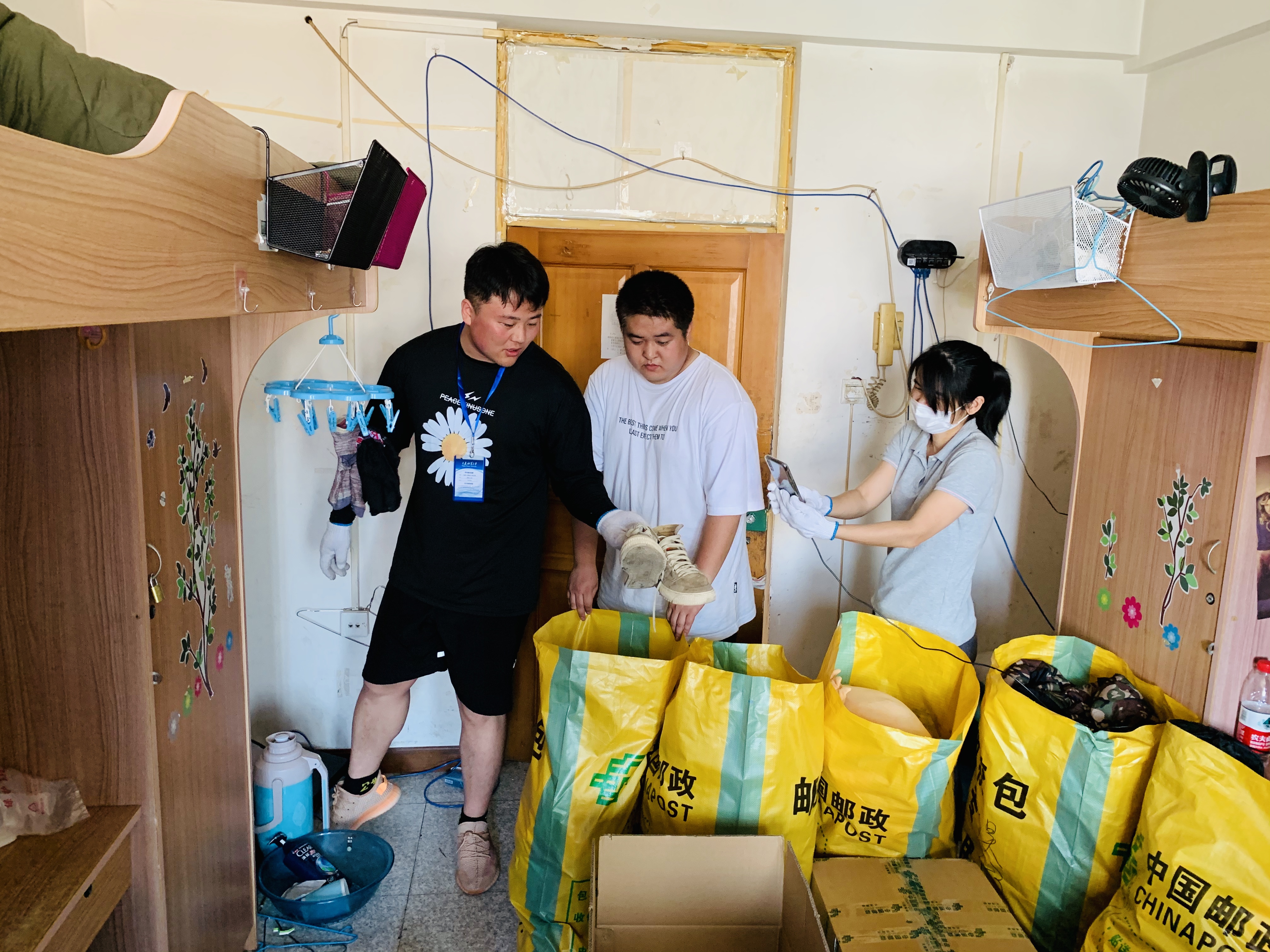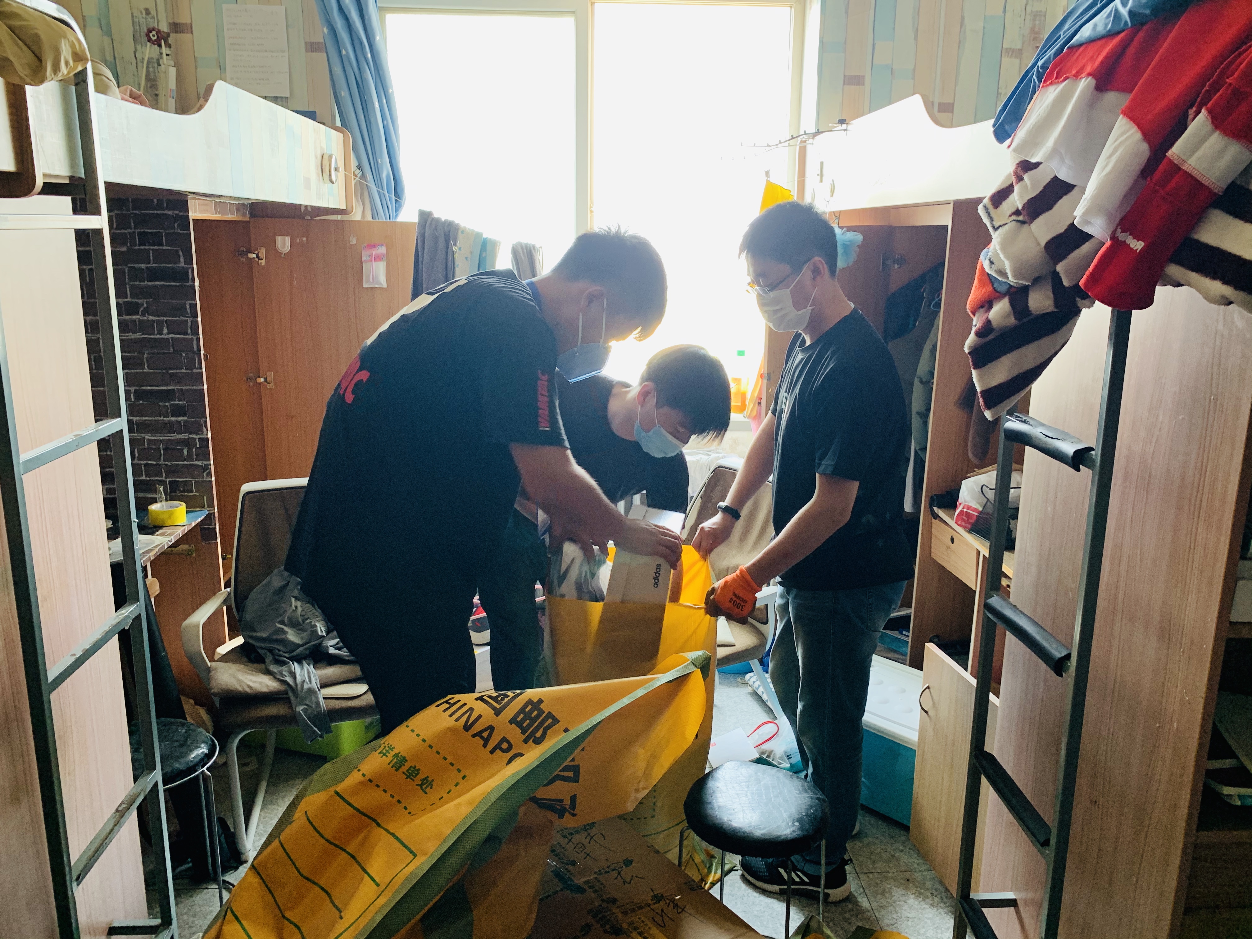 在学生的“导航”下,一件件精准“定位”物品,反复确认,精心整理,确保物品准确齐全,保证每一件行李完好无损的打包入袋,这背后是每一个秉承“为学生服务”初心的老师不计回报地默默奉献。老师们用自己的劳动和汗水,寄给每位毕业生一份“厚重的礼物”。不论是毕业还是疫情,割不断的是航船学院和每位学生的师生情。