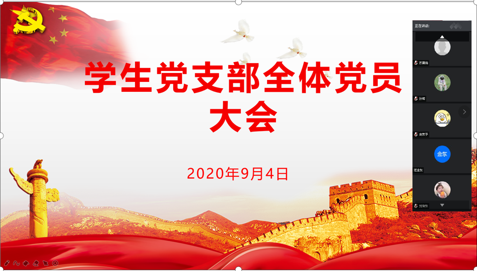 为贯彻校党委秋季开学复学工作会议精神,切实做好秋季开学及今后一段时间各项工作,9月4日学生党支部通过腾讯会议平台召开2020年第三季度党员大会,支部全体成员参加此次会议,会议由支部书记赵小龙主持。