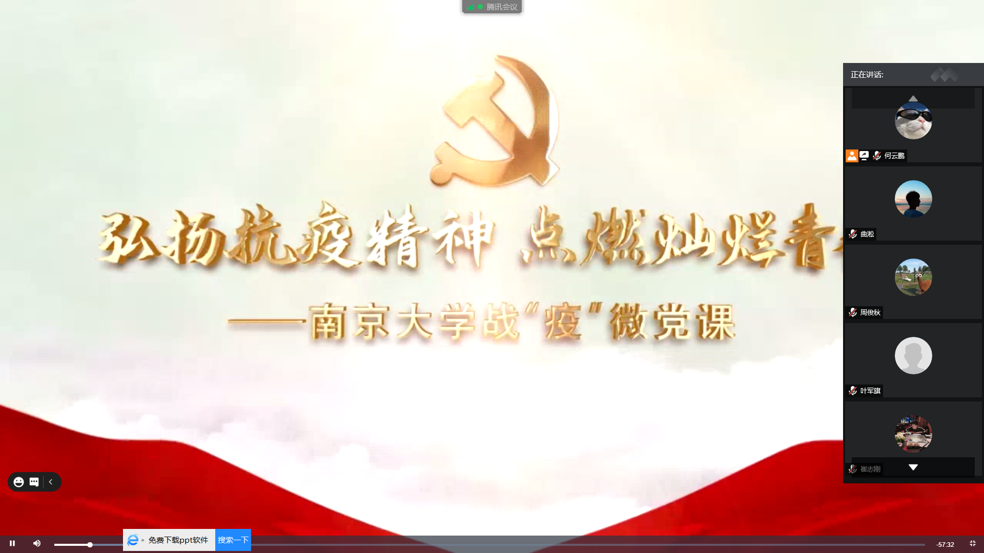 9月9日,学生党支部于腾讯会议学习观看战“疫”“微党课第十二讲主题党日活动,支部全体党员参与了此次会议,会议由支部书记赵小龙主持。