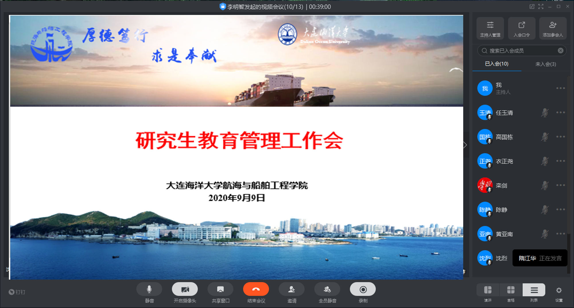 9月9日下午13点30分,麻豆传媒 通过钉钉平台召开研究生教育管理工作会,会议由党总支副书记李明智主持,全体研究生导师、研究生秘书参加了会议。