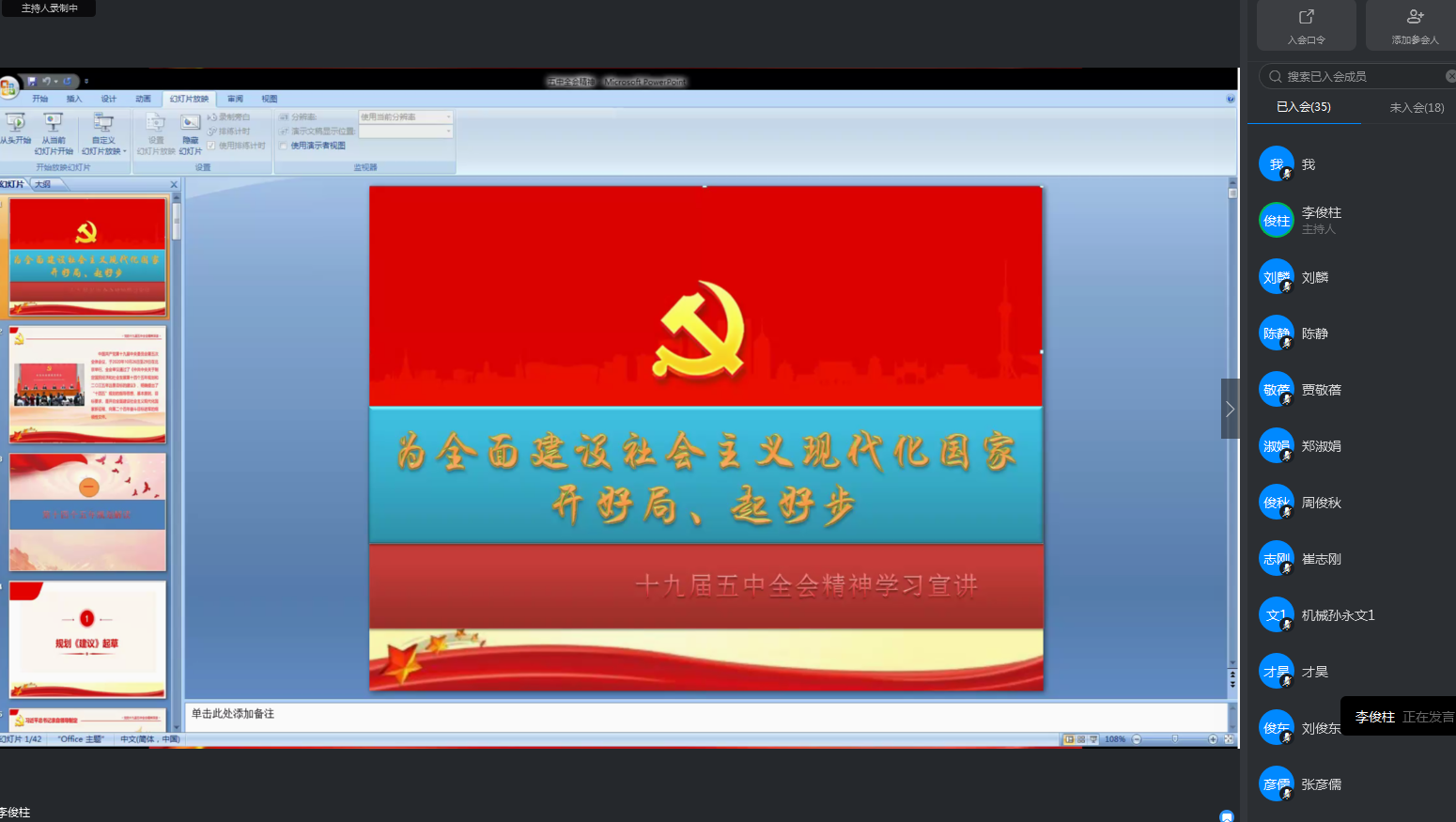 12月16日,学院利用钉钉平台开展了题为“为全面建设社会主义现代化国家开好局、起好步”—党的十九届五中全会精神宣讲会。船舶与海洋工程专业教研室全体教师、全体学生党员参加会议。宣讲会由学院党总支书记李俊柱主讲。