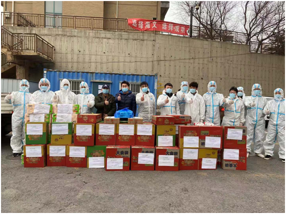 疫情无情,人间有爱。2020年12月28日,大连翔越船舶设备有限公司于麻豆传媒 校外公寓门口向学院捐赠矿泉水、卫生纸等应急物资。学院党总支副书记王海鹏代表学院接受捐赠。