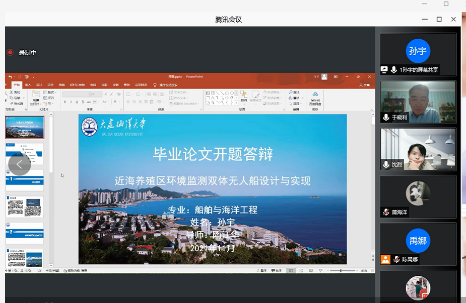 本次硕士学位论文开题邀请了大连舰艇学院、大连船舶重工、大连松辽船厂、油特机械工具(大连)有限公司等4名高校教授和企业专家担任开题评审组组长或成员。各评审组严格履行学校硕士研究生学位论文开题工作程序,遵照学校要求有序进行,并以严谨、负责的学术态度,明确指出开题报告中存在的问题,并提出针对性的修改建议。6名船舶与海洋工程学术硕士与15名船舶工程领域专业硕士通过本次开题,通过率为100%。