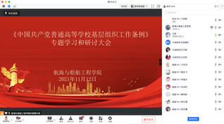 11月12日,学院通过腾讯会议组织开展《中国共产党普通高等学校基层组织工作条例》专题学习和研讨大会。首先王婷向大家陈述本次研讨会主题,讲解《中国共产党普通高等学校基层组织工作条例》的主要内容,随后进行分组讨论,每人根据讨论情况依次发表自己的看法以及感悟。
