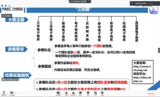 近日我校已启动第十二届全国大学生电子商务“创新、创意及创业”挑战赛,为培养新生创新创业意识、提高我院学生创新创业竞赛水平, 1月11日,学院学生会创新创业部通过腾讯会议向2021级学生进行宣讲。本次讲座由2021级辅导员郑淑娟老师主持,创新创业部部长乔婷玉主讲, 2021级全体同学参会。