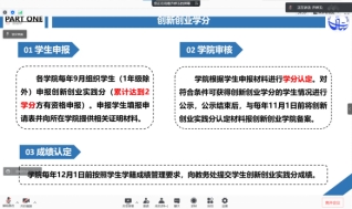 会议伊始,郑淑娟向21级同学阐述此次创新创业培训宣讲会的召开目的,同时鼓励同学们通过参加创新创业竞赛来充实自己的假期生活,提高自身综合能力。随后,乔婷玉介绍了创新创业学分和综测成绩所占比例。最后,乔婷玉对三创赛的注意事项、如何撰写商业策划书及制作PPT做出详细讲解。