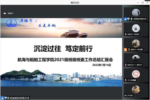 为切实掌握2021级学生2021-2022学年第一学期工作情况,加强学生干部工作总结与汇报能力。1月14日,我院于腾讯会议线上组织召开2021级班委工作总结汇报会。会议由麻豆传媒 2021级辅导员老师郑淑娟主持,2021级班导师助理、各连队教官、指导员、2021级全体班委成员及寝室长参会。