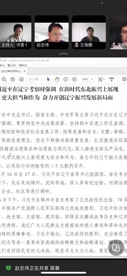 会上,赵忠伟带领与会成员共同学习了习近平总书记在辽宁考察时的重要讲话精神、习近平总书记在省部级主要领导干部专题研讨班上的重要讲话精神、习近平总书记在中央统战工作会议上的重要讲话精神以及省常委、省政府、市常委、市政府、省教育厅党组关于传达学习贯彻习近平总书记在辽宁考察时重要讲话的会议精神,并围绕学习内容进行交流研讨。