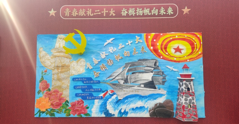 艺体结合两不误,全面发展筑高台。演唱台上,《没有共产党就没有新中国》与《走向复兴》两首歌曲的表演凝聚着航船学子的努力、真诚与热血。细心雕琢的立体板报,展示了航船学子对祖国对党对学校的美好祝愿。