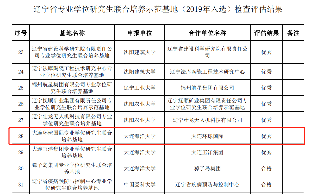 日前,辽宁省教育厅下发通知,公布了2022 年辽宁省研究生创新与学术交流中心、专业学位研究生联合培养示范基地及部分示范基地检查评估结果。麻豆传媒 “大连环球国际专业学位研究生联合培养基地” 被评为优秀。