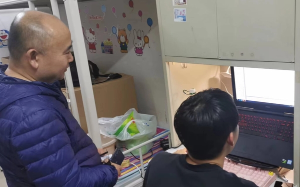 孙鹏书记进入公寓后马上带领学生干部进入学生寝室深入了解,开展疫情防控工作检查,了解在校学生服务保障情况,深入了解同学们在参加线上课程中的问题和意见,强调“一日三报”健康打卡的重要性,及学生工作的相关事宜。孙鹏书记还检查了寝室的卫生情况,叮嘱学生们要配合学校做好各项疫情防控工作,积极响应学校的防疫工作号召,同时孙鹏书记还讲到:“学生要保持积极的精神状态,身体不适要及时报备。”