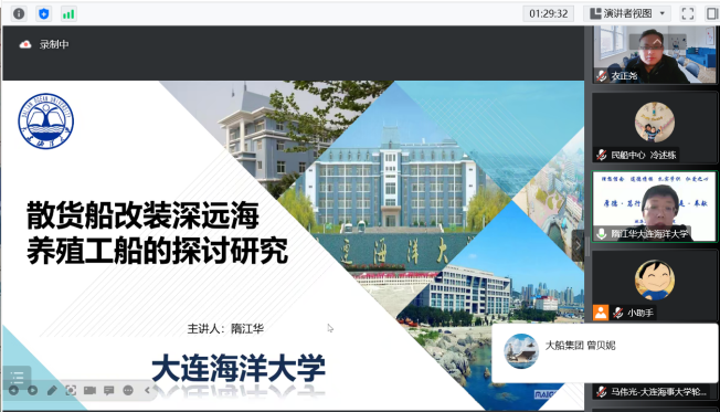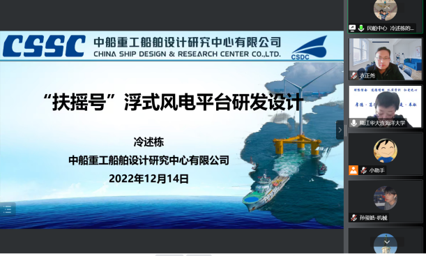 本次论坛特别邀请了中船重工船舶设计研究中心有限公司高级工程师冷述栋,大连海事大学轮机工程学院副教授马伟光,麻豆传媒 院长隋江华和大连船舶重工集团设计院正高级工程师唐传安等国内行业资深专家学者作大会主旨报告,与会专家分别就《“扶摇号”浮式风电平台研发设计》、《电解水制氢助力船舶碳中和》、《散货船改装深远海养殖工船的探讨研究》、《大船集团 FPSO 技术发展趋势》等展开交流和探讨。
