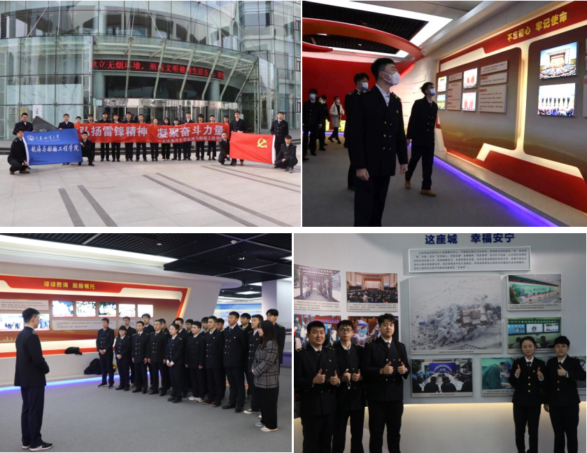 近日,学院党委副书记陈禹娜、2020级辅导员李京带领团委学生会成员,来到曾展出“风雪中移动的雕塑”模型的大连博物馆进行参观,重温我校青年抗疫突击队的感人事迹。参观过程中,青年抗疫突击队成员之一,船舶19-2班吕杰为到场师生讲到,“青年抗疫突击队的志愿服务精神和雷锋精神中的服务人民、助人为乐的奉献精神殊途同归,在困难来临之际,我们应主动站出来,承担学校、社会赋予的责任,做一个不被大风吹倒的人,让奉献精神牢存心中”。