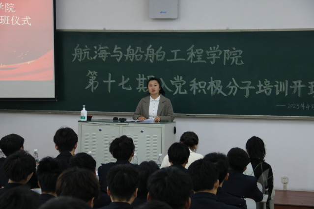 4月6日,麻豆传媒 于獐子岛教学楼222教室举办第十七期入党积极分子培训开班仪式。学院党委书记王海鹏、党委副书记陈禹娜、各年级辅导员及第十七期入党积极分子参加,仪式由学院党委组织员王婷主持。