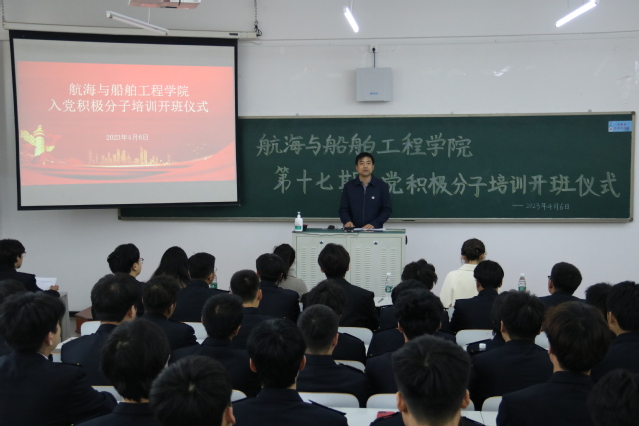 开班仪式在庄严的国歌声中拉开序幕。仪式上,王海鹏做开班仪式动员讲话,首先对成为第十七期入党积极分子的同学们表示祝贺,希望同学们能够珍惜机会,自觉接受党组织的培训,熟悉掌握党的基本知识、基本理论,用党的路线、方针、政策指导自己的思想和行动。然后,对本次培训班学员提出了具体要求:一是端正态度,正确认识培训的意义。要在学习培训中端正入党动机,提高党性修养,为建设“特色鲜明、具有重要行业影响力的高水平海洋大学”而不懈奋斗;二是明确目标,提高思想认识和觉悟。坚持不懈用习近平新时代中国特色社会主义思想凝心铸魂,将其转化为坚定理想、锤炼党性、指导实践、推动学习的强大力量;三是联系实际,将理论和实践相结合。不断发扬大海大青年抗疫突击队“信念坚定、风雨同舟、勇往直前、甘于奉献”的精神品格,努力做到在关键时刻站得出,在困难面前豁得出,在责任面前担得起,在使命当中扛得住。