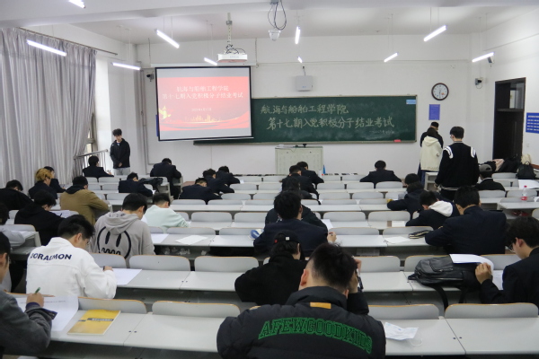 4月17日,我院于獐子岛教学楼106教室开展第十七期入党积极分子培训班结业考试。辅导员郎幸、李京监考,全体培训班学员准时参加考试。