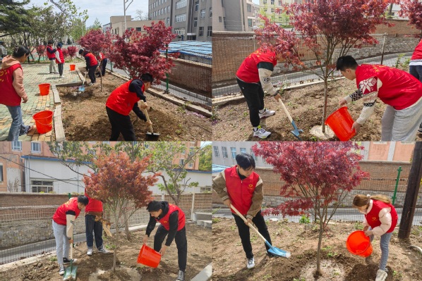 活动中,学生志愿者们热情高涨,大家手握铁锹,分工协作,配合默契,处处洋溢着团结协作、热火朝天的劳动景象。经过师生们的共同努力,新种下的数十株小树在泥土中扎根挺拔,焕发出勃勃生机。