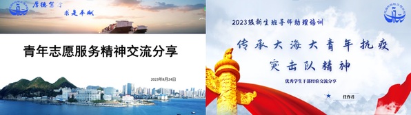 张经东和任作君带领大家回顾大海大青年抗疫突击队那段“众志成城”的时光,并着重分享“风雪中移动的雕塑”背后故事,鼓励班导助发挥志愿服务的示范引领作用,用实际行动帮助新生树立“奉献、友爱、互助、进步”的志愿者精神,带领新生传承发扬“信念坚定、风雨同舟、勇往直前、甘于奉献”的精神品格。