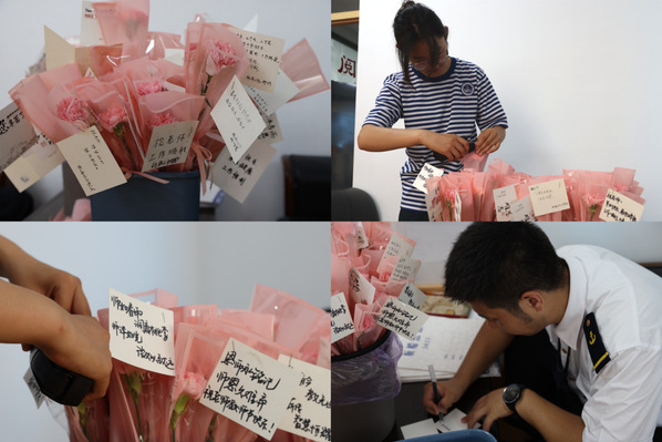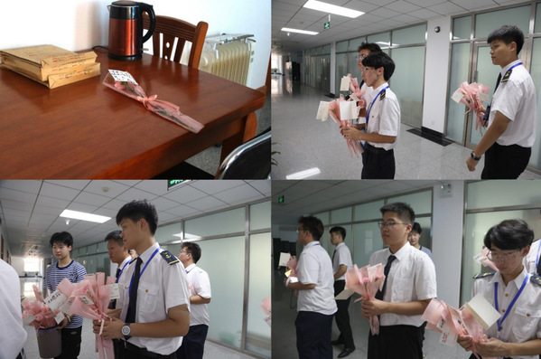 教诲如风,师恩似海。为进一步弘扬教育家精神,牢记习近平总书记殷殷嘱托,发扬尊师重教的传统美德,在第39个教师节来临之际,学院工会和团委联合开展“花香情浓,感念师恩”活动,依托准军事化的管理方式,学生在獐子岛教学楼前进行晨练队列训练时,向全校老师表达了教师节的祝福,为学院全体教职工录制祝福视频并一一送去贺卡与鲜花,传递诚挚的节日问候。