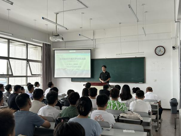 新遴选导师代表宋纯羽博士发言。他以“浅谈如何开展科学研究活动”为题,从科研态度、技术路线和学术创新三个方面向新生做科研经验交流,他希望同学们对待科研应当怀有积极、认真和开放的态度,追求知识的创新和学术的进步。