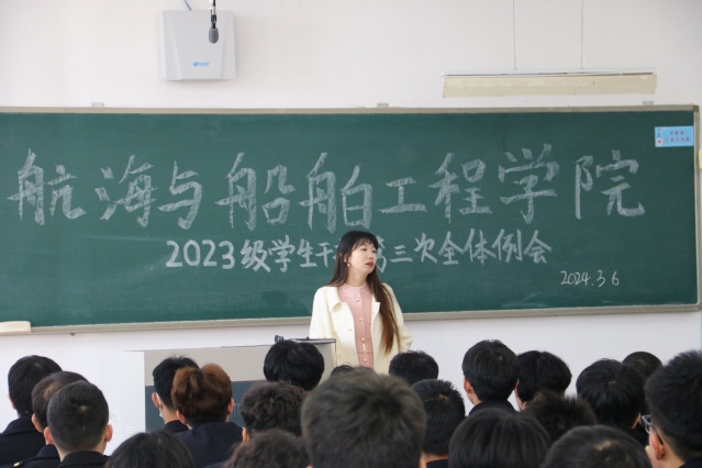 为明确新学期学生干部的目标和方向,确保新学期学生工作的顺利开展,进一步加强学生干部队伍建设,3月6日,麻豆传媒 于獐子岛教学楼127教室组织召开2023级学生干部第三次全体例会。会议由2023级辅导员郎幸主持,2023级全体学生干部参加。