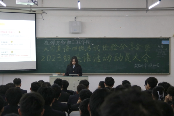 为帮助同学们提升英语四级通过率,营造良好的英语学习氛围,3月22日,麻豆传媒 于獐子岛教学楼104教室,组织召开了大学英语四级考试经验分享会暨2023级英语学习动员大会。会议由2021级学生康雨霏主讲,2023级全体学生参加。