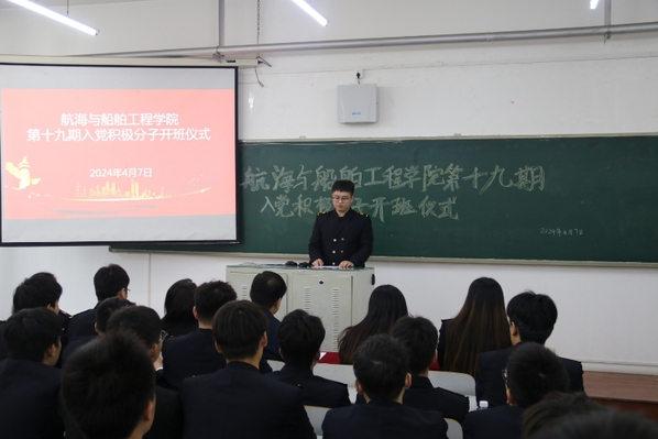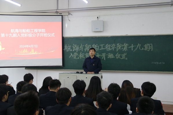 王海鹏作开班动员讲话,他指出,入党积极分子培训,是发展党员工作的一项重要内容,也是每一名同志履行入党手续前必须经过的一个关键步骤,更是提高入党积极分子理论素养、能力素质的一项重要举措。各位入党积极分子要以坚定的共产主义信念,正念、正言、正行,要端正态度,正确认识培训班的重要意义,自觉接受党组织的培养、教育和考察,解决“组织入党”的问题。要自觉将理论学习作为终身必修课,在学习党史、党章、党纪的过程中明确价值追求,不断端正入党动机,解决“思想入党”的问题。要时刻牢记青年学生的责任,以大海大青年突击队等“身边学长”为榜样,秉承“信念坚定、风雨同舟、勇往直前、甘于奉献”的精神品格,自觉肩负起“强国建设、民族复兴”赋予的时代使命,解决“行动入党”的问题。