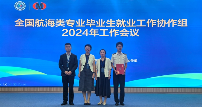 会上,我院2024届毕业生任作君被评为全国航海类专业2024届优秀毕业生,并作为毕业生代表上台领奖。另外,首届“到祖国最需要的地方去”就业人物——我院2021届毕业生丁世鸿,其录制的视频也在会上进行展示,全国仅10人。