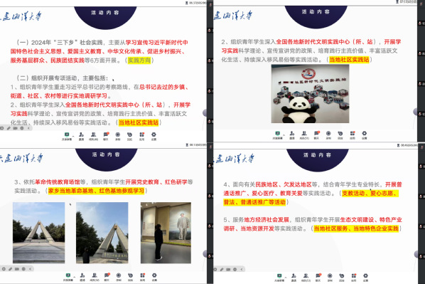 此次指导会的成功举办,为2024年暑期文化科技卫生“三下乡”社会实践活动的顺利开展奠定了坚实基础。相信在大家的共同努力下,学生们将在社会课堂中受教育、长才干、作贡献,争做有理想、敢担当、能吃苦、肯奋斗的新时代好青年,奋力书写为中国式现代化挺膺担当的青春篇章。