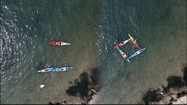 活动现场,帆船犹如灵动的海鸟在海面上乘风破浪,在海风中自由翱翔。一艘艘皮划艇在海边摆出“二〇”字样庆祝第20个中国航海日。它们在海上展示着海上运动的独特魅力,彰显着大连建设全球海洋中心城市的底蕴以及大海大学子对航海文化的传承和发扬。